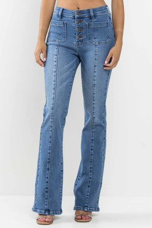 Elevate your western apparel game with our Emma Bootcut Denim Pant. These stylish jeans feature front square pockets, back pockets, and a button-up closure. Make a statement with the flattering bootcut fit and take your outfit to the next level. Crafted from high-quality denim, these jeans are the perfect addition to your wardrobe.