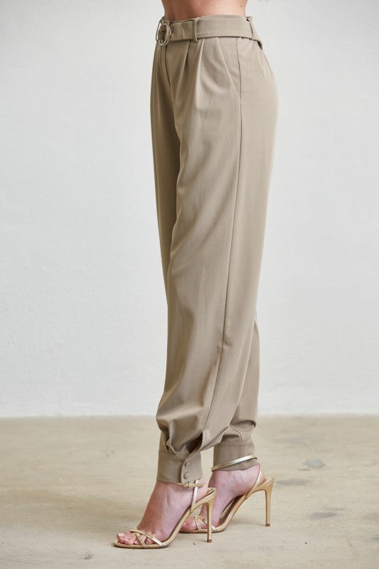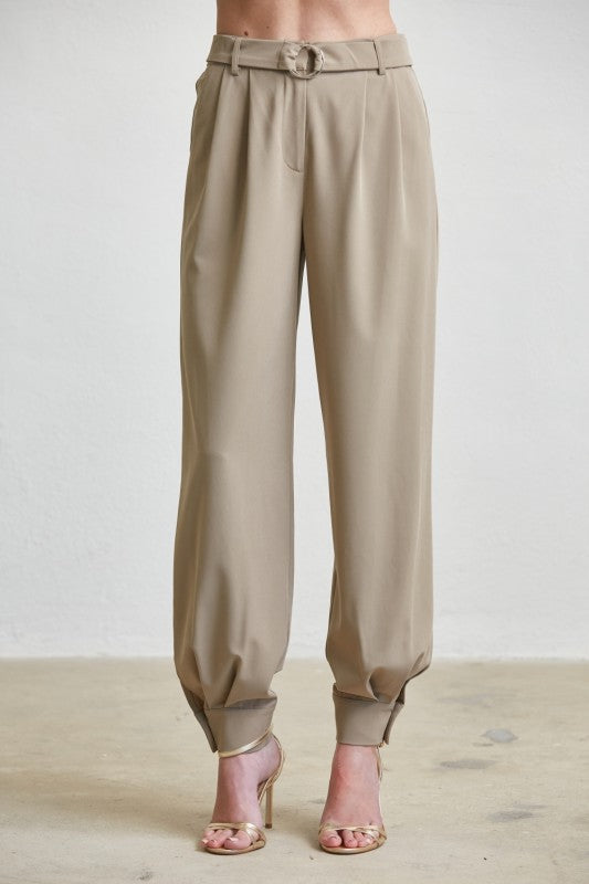 Meet the Kata Pant—where polished meets playful! These tailored beauties feature a removable belt with a gleaming buckle to cinch your waist just right, while soft front pleating adds movement and structure. The tapered leg flows into a chic cuffed hem with button details for that refined finish. An elasticized back waistband keeps you comfy all day, and the smooth, drapey woven fabric drapes like a dream. Dress them up or down—these high-waisted wonders are your new go-to for effortless sophistication.