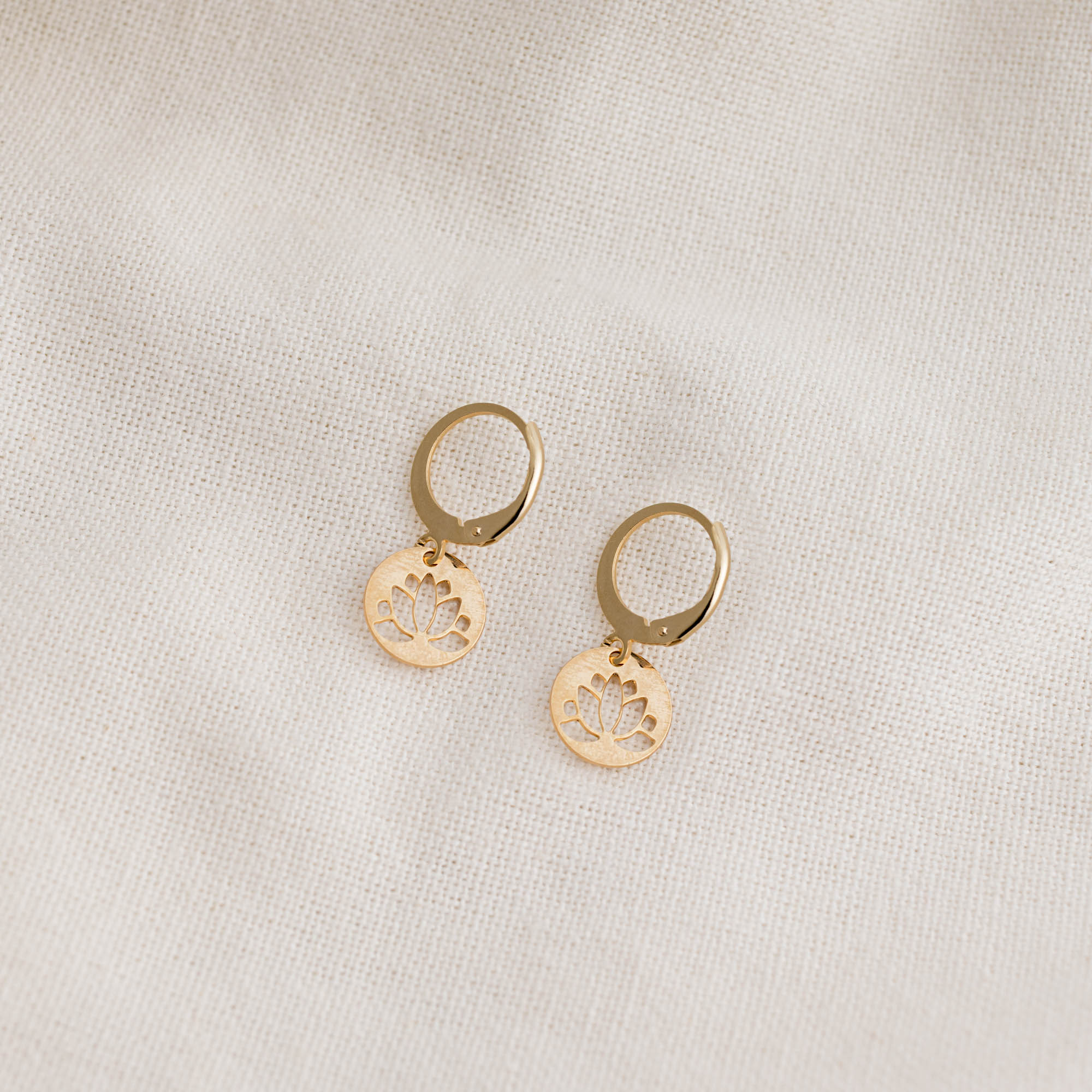 These small earrings feature a beautiful circle charm with a delicate lotus design. Made with high-quality stainless steel, these earrings are not only stylish but also durable.