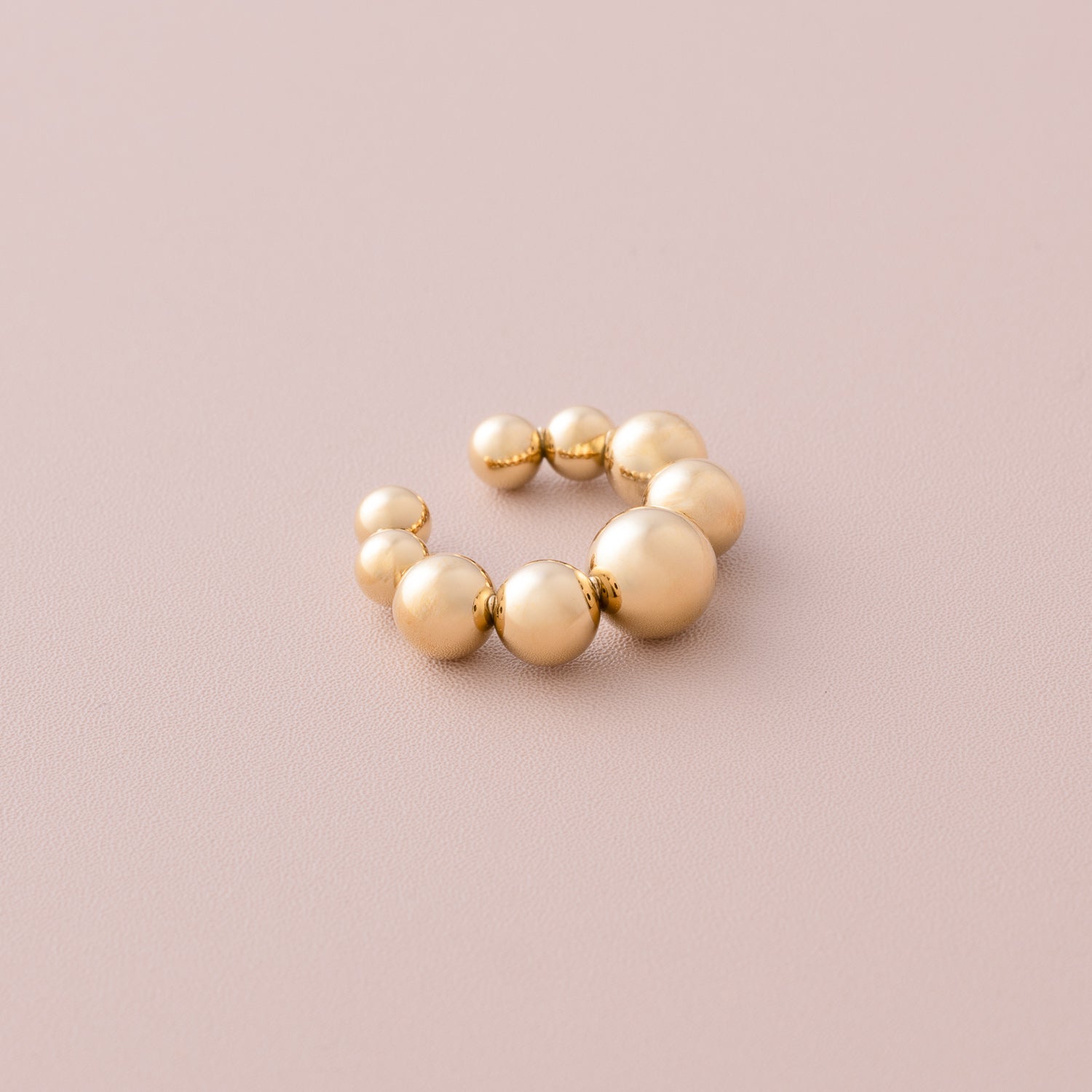 Delicate stainless steel earcuff featuring a pattern of tiny, polished balls for a minimalist, modern touch—available in gold or silver and no piercing needed.