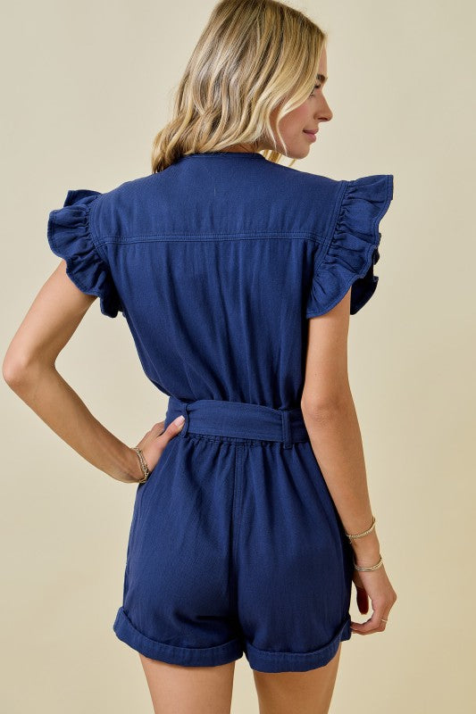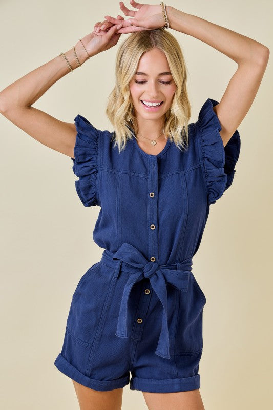 The Betty Denim Romper is your new go-to for effortless style! This playful one-piece features charming ruffle sleeves that add a flirty touch, while contrast stitching details bring visual interest and personality. Crafted from classic denim, it's perfect for casual outings, weekend adventures, or when you want to look put-together without trying too hard. Comfortable, cute, and totally Instagram-worthy—slip it on and you're ready to go!