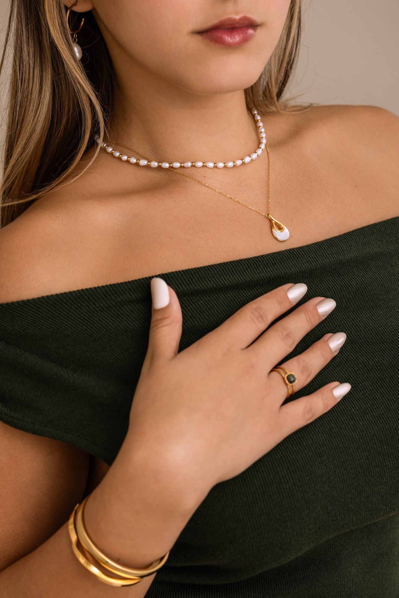 This freshwater pearl choker is a classic and elegant piece, designed to rest gracefully on the collarbone. It measures 15 inches in length and includes a 3-inch extender for an adjustable fit.