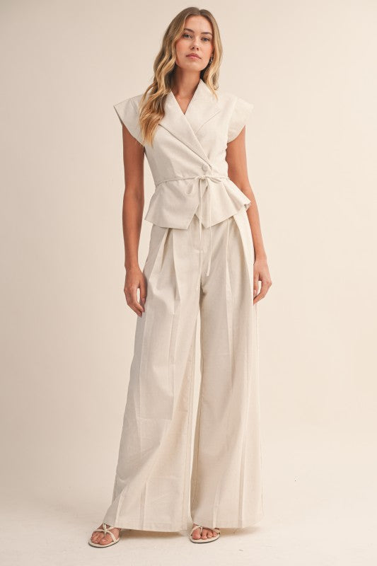 Make a statement with the Alara Pant Set—where comfort meets bold style. This oversized shoulder sleeveless top pairs perfectly with flowing long pants for an effortlessly chic look that works from day to night. The relaxed fit and modern silhouette give you room to move while keeping you looking put-together. Whether you're running errands or heading out with friends, this versatile set is your go-to for laid-back elegance with an edge.