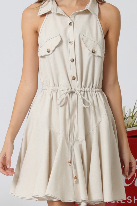 Effortlessly chic and ready for anything, the Mima Dress is your new go-to piece. This sleeveless button-down design pairs timeless style with modern flair, while the tie detail at the waist creates a flattering silhouette. Perfect for dressing up or down, it's the versatile mini that works from brunch to evening plans. Slip it on and feel instantly put-together.