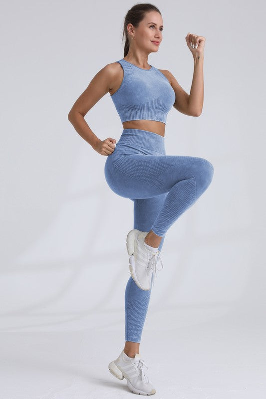 Experience the Nicole Set, crafted from super soft, mineral-washed fabric with 4-way stretch for ultimate freedom. The sleeveless top features a removable padded bra, combining style and support. Paired with high-waist leggings designed to lift and sculpt, this set empowers your moves—whether you're hitting yoga, running, or owning your daily grind. Dare to feel confident, comfortable, and unstoppable.
