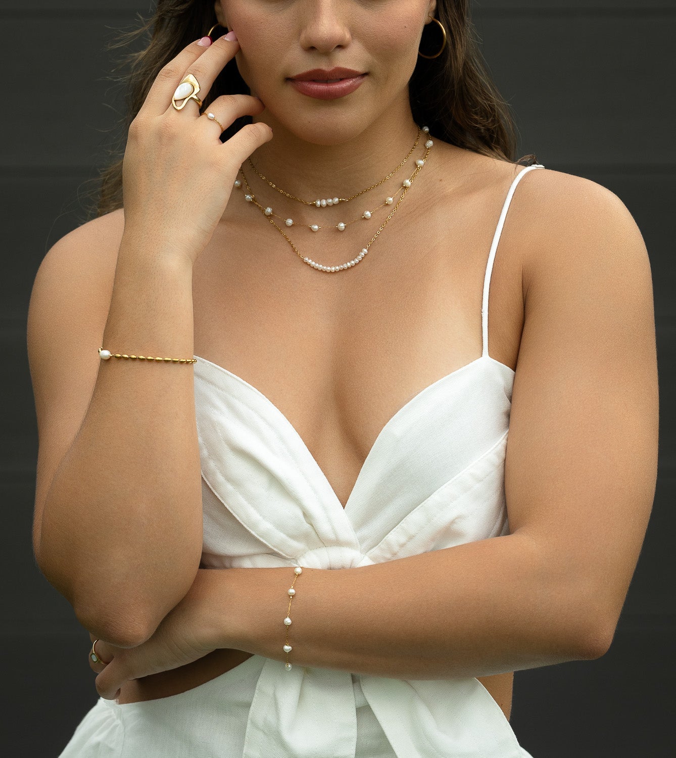 The Isamar Bracelet is a stylish and durable accessory, handcrafted with high-quality stainless steel and accented with stunning freshwater pearls. The adjustable extensor ensures a comfortable fit for any wrist size.